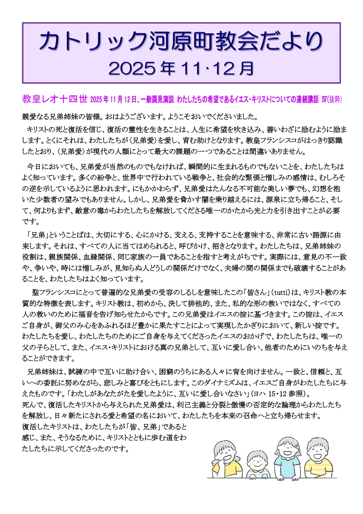 「カトリック河原町教会だより」は、休刊となった「イクトウス」に代わって発行されているものです。
